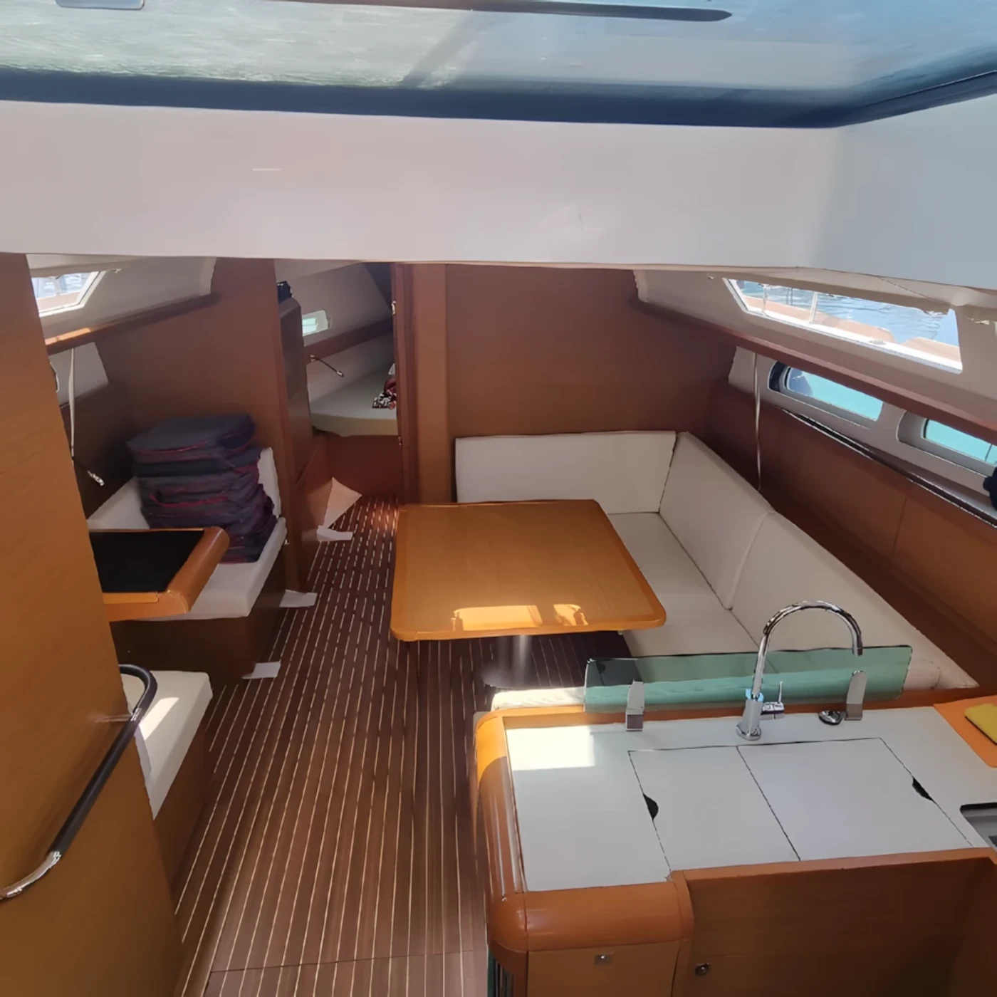 Noleggia la barca a vela Sun Odyssey 419 in Liguria, base di Marina del Fezzano, ideale per crociere confortevoli lungo la costa tirrenica e l’Arcipelago Toscano. Con lunghezza di 12,76 m e larghezza di 3,99 m, questo sailing yacht offre spazi ben organizzati e ottime prestazioni in navigazione. Dispone di 3 cabine, 2 bagni e può ospitare comodamente 6+2 persone, rendendolo perfetto per famiglie o gruppi di amici. Equipaggiato con motore da 45 hp e serbatoio acqua dolce da 200 litri, garantisce autonomia e affidabilità per vacanze in barca a vela all’insegna del relax e della sicurezza. Ideale per chi cerca noleggio barca a vela in Liguria con comfort e qualità.